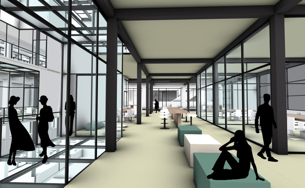 Μετά από αυτόν τον πειραματισμό, προχωρήσαμε μέσω μιας σειράς διαγραμμάτων στις προσθήκες επιφανειών στο υπάρχων κτήριο και στην κατανομή των λειτουργιών.